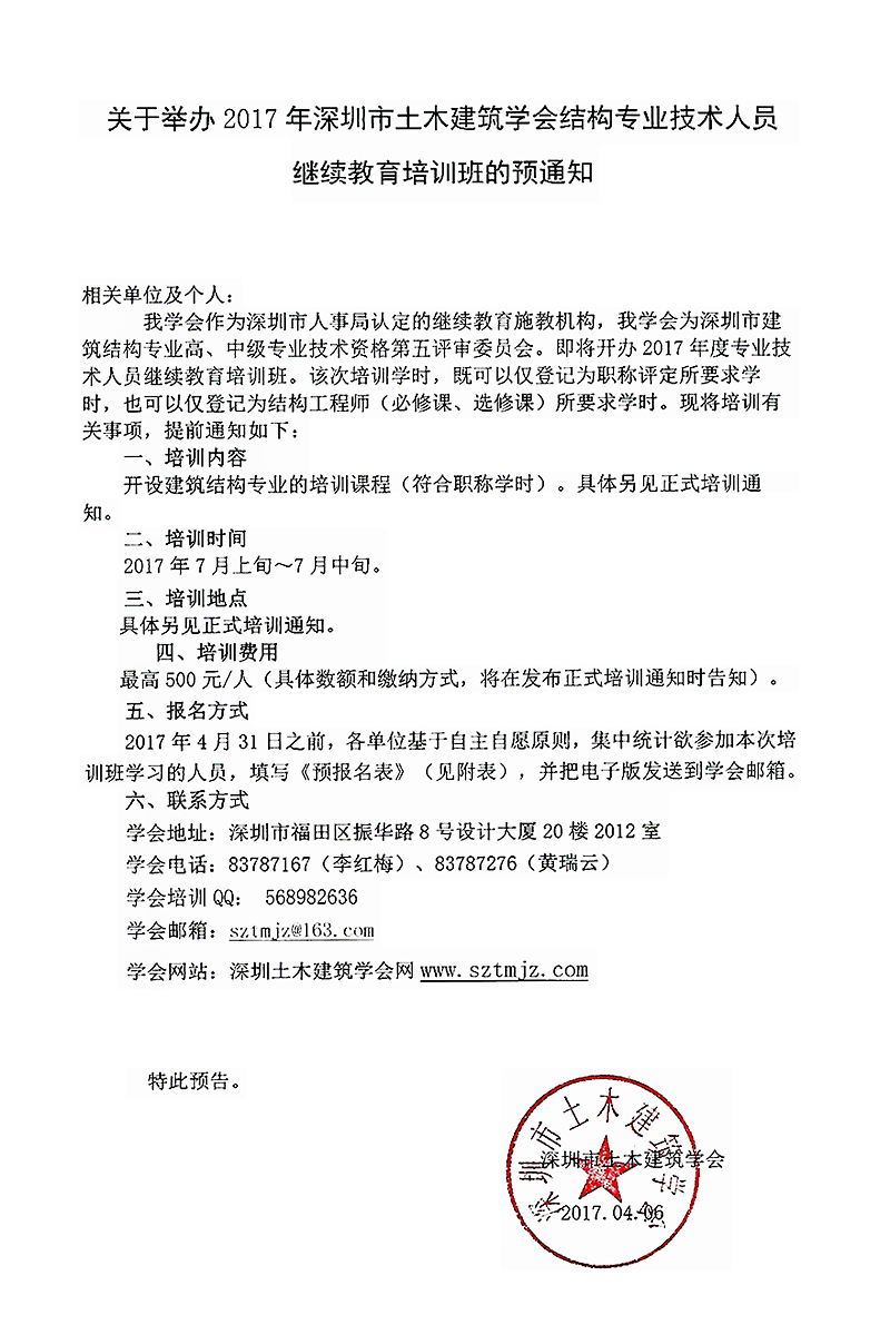 當前位置:深圳土木學會 > 信息中心 > 通知公告