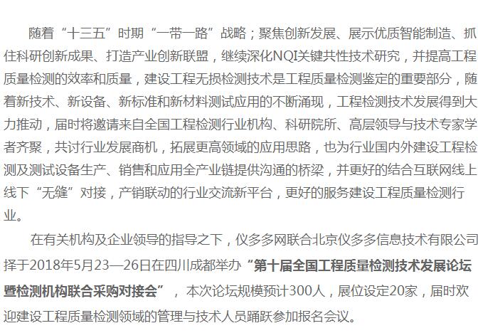 第十屆全國工程質量檢測技術發展論壇暨檢測機構聯合采購對接會(hui)
