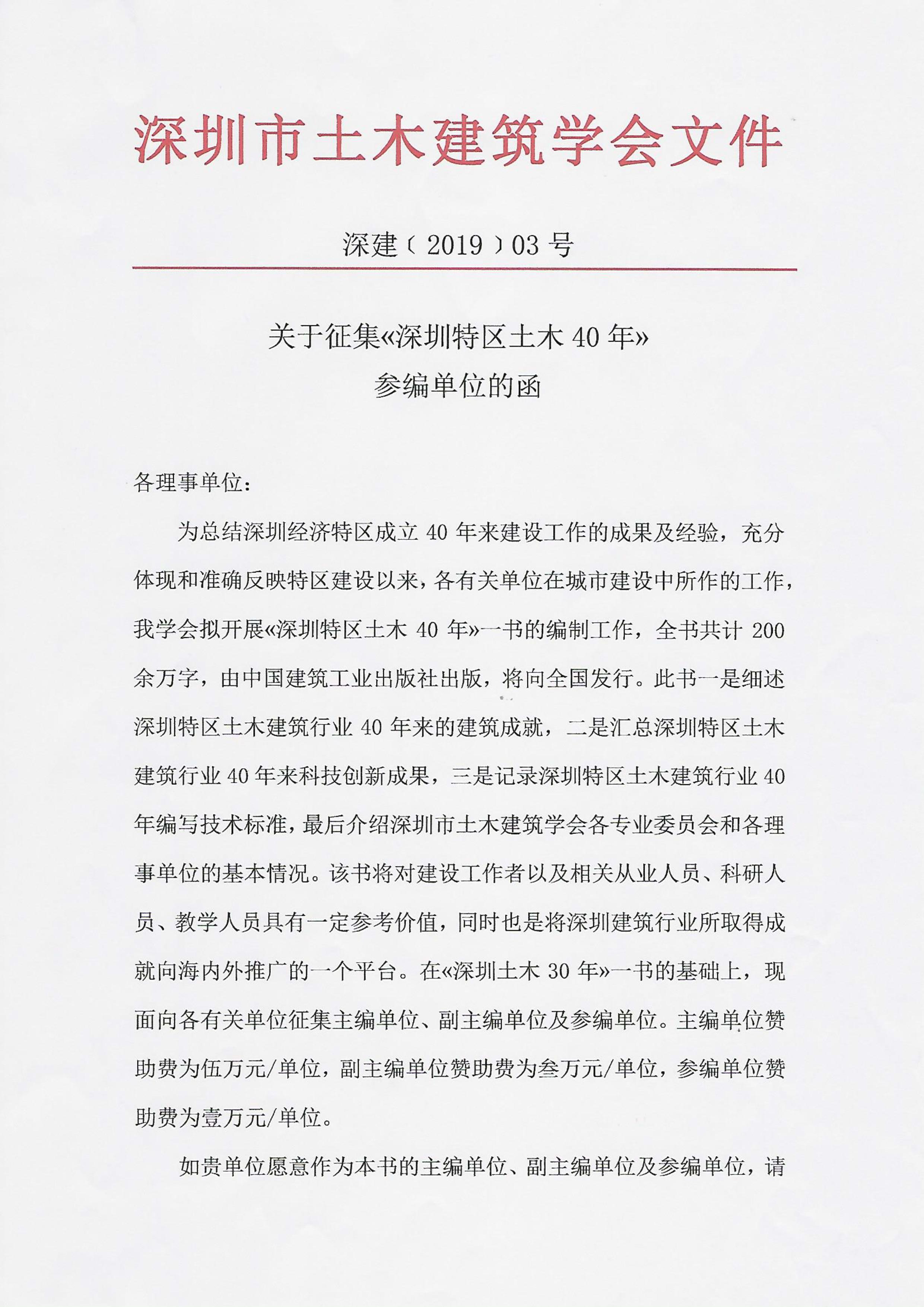 關於征集“深圳特區土木40年”主編單位及參編單位的函