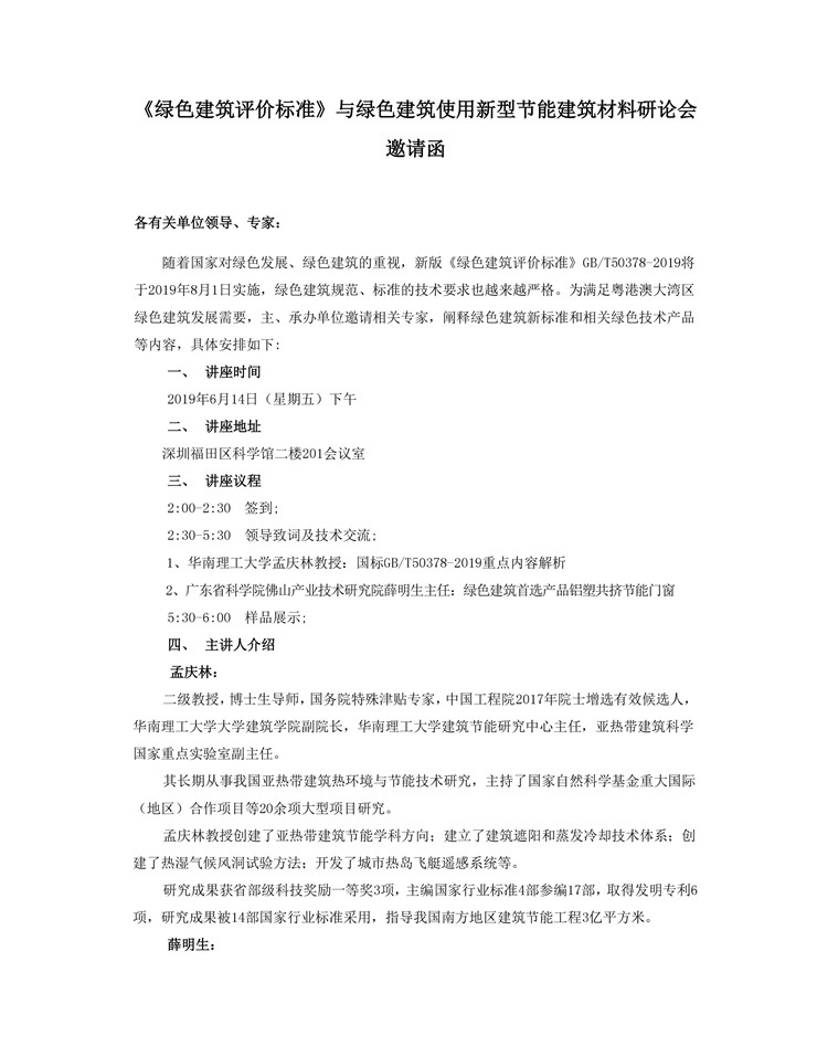 《綠色建築評價標準》與綠色建築使用新型節能建築材料研論會邀請函