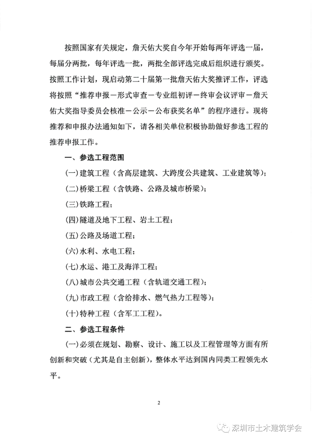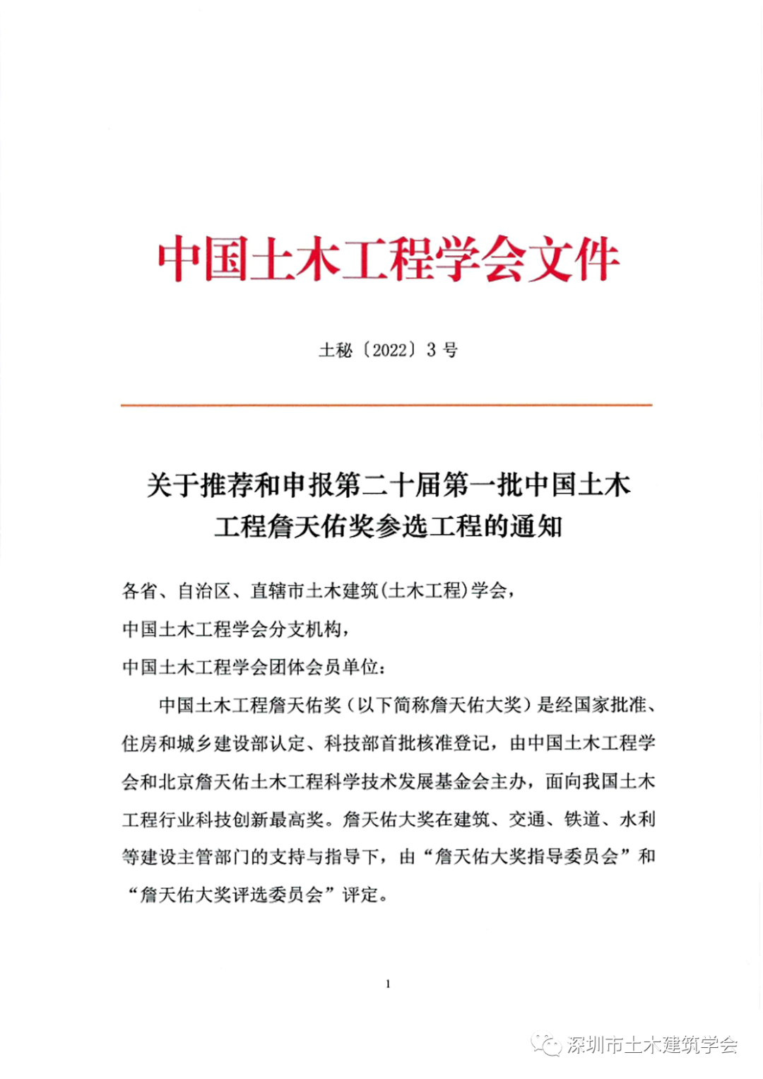 關(guan) 於(yu) 推薦和申報第二十屆第一批中國土木工程詹天佑獎參選工程的通知