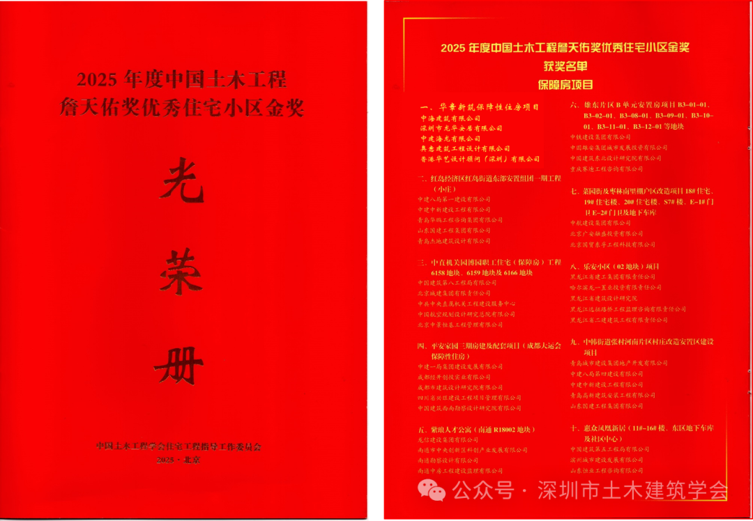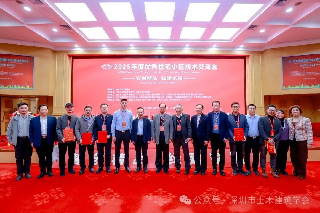 會(hui) 上由中國土木工程學會(hui) 住宅工程指導工作委員會(hui) 王琳常務副秘書(shu) 長主持頒發了2025年中國土木工程詹天佑獎優(you) 秀住宅小區金獎,由我學會(hui) 組織推薦的“華章新築保障性住房項目”榮獲住宅金獎。該項目由我學會(hui) 會(hui) 員單位中海建築有限公司、深圳市龍華安居有限公司、中建海龍科技有限公司、奧意建築工程設計有限公司、香港華藝設計顧問(深圳)有限公司共同完成。