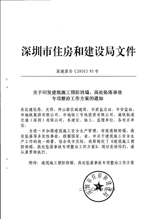關於印發《建築施工預防坍塌、高處墜落事故專項整治工作方案的通知》