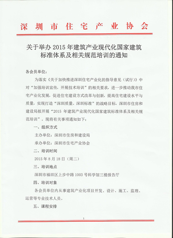 關於舉辦2015年建築產業現代化國家建築標準體係及相關規範培訓的通知