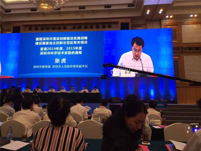 2016年9月1日深圳巿科技創新大會(hui) 暨深圳巿科協第六次代表大會(hui) ,在五洲賓館隆重召開。許勤市長主持會(hui) 議,馬興(xing) 瑞書(shu) 記發表重要講話,張虎常務付市長宣讀表彰決(jue) 定,林潔常委、統戰部長對科協寄於(yu) 厚望。深圳大學李景鎮教授和大疆無人機汪滔董事長獲市長獎,並發表感言。深圳市人大常委會(hui) 副主任蔣宇昂當選第六屆科協主席,孟建民院士當選付主席,劉福義(yi) 秘書(shu) 長當選科協六屆委員。市政府各委、辦、局和各區領導及社會(hui) 各界人士600多人參加深圳市科技創新大會(hui) 暨市科協六次代表大會(hui) ,盛況空前。