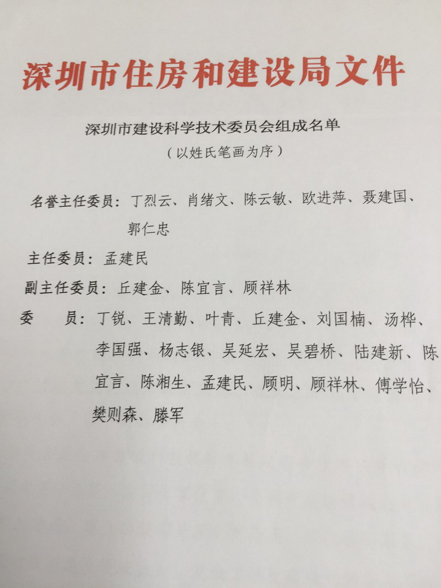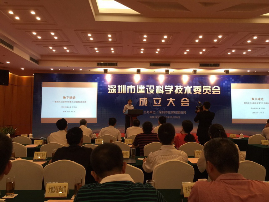 2016年10月28日深圳市建設科學技術委員會(hui) 成立大會(hui) 在五洲賓館舉(ju) 行。會(hui) 議由住建局楊勝軍(jun) 局長主持,市委常委楊洪同誌作重要講話,孟建民院士代表技術委員致辭,丁烈雲(yun) 院士作學術報告。市政府各局辦,各區建設局及有關(guan) 學會(hui) (協會(hui) )領導共計300餘(yu) 人參加。
