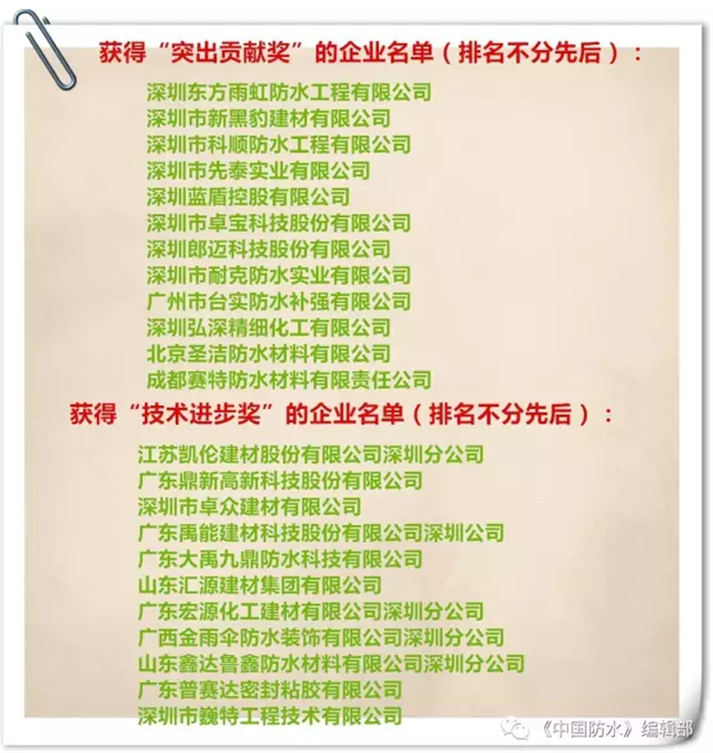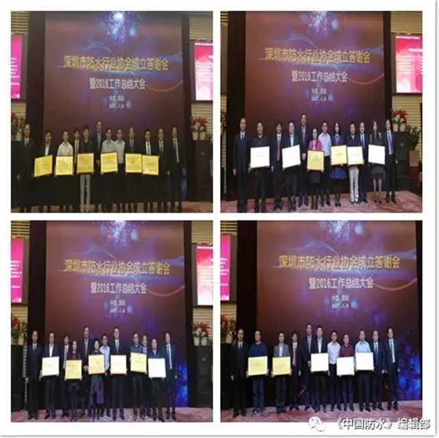 大會對深圳防水行業突出貢獻獎、深圳防水行業技術進步獎進行表彰並頒發協會任職證書。