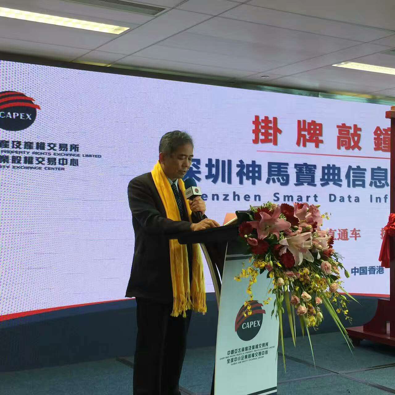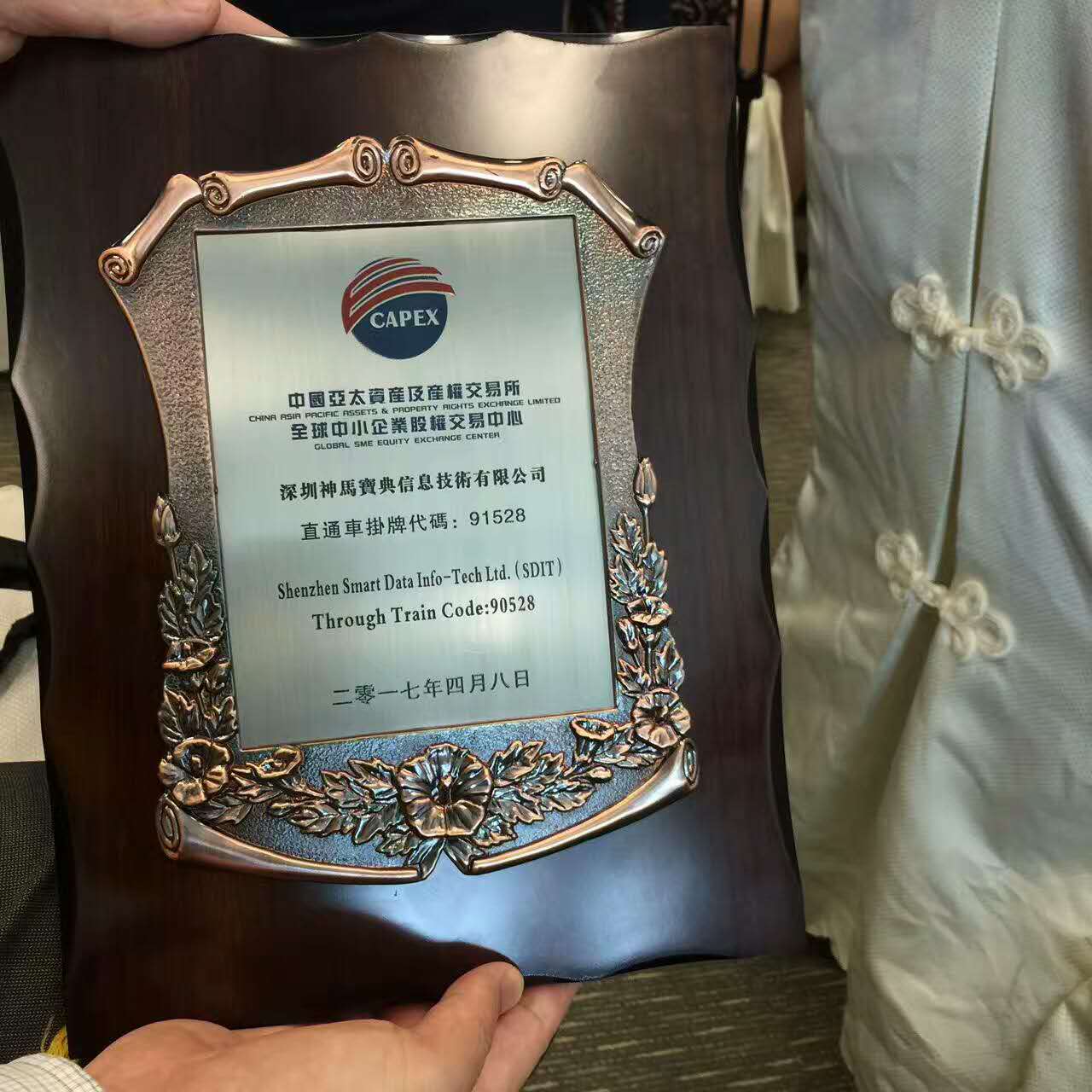 2017年4月8日,學會(hui) 劉福義(yi) 秘書(shu) 長和孟建民院士應邀出席在香港舉(ju) 行的全球中小企業(ye) 股權交易中心第二批掛牌和敲鍾儀(yi) 式。