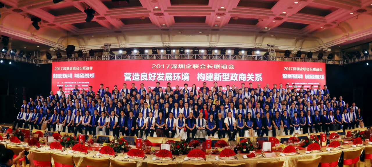 2017年7月11日,深圳市企業(ye) 聯合會(hui) 和深圳市企業(ye) 家協會(hui) 在深圳洲際酒店舉(ju) 辦“2017深圳企聯會(hui) 長聯誼會(hui) ”,共商營造良好發展環境、構建新型政商關(guan) 係,為(wei) 粵港澳大灣區貢獻力量。深圳市原老領導和企聯各位付會(hui) 長及新聞媒體(ti) 的朋友共計400多人出席會(hui) 議。