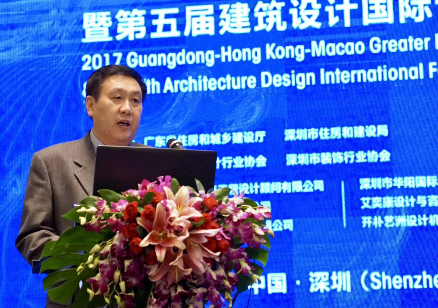 2017-12-26,2017粵港澳大灣區工程設計論壇暨第五屆建築設計國際論壇在深圳市希爾頓酒店舉(ju) 行。會(hui) 議由廣東(dong) 省住建廳、深圳市住建局、深圳市勘協、深圳市裝協聯合國舉(ju) 辦。蔡瀛付廳長、張學凡局長、高泉付局長、崔愷院士、修龍理事長等出席並致辭,趙春山會(hui) 長主持論壇,劉福義(yi) 、瞿培華等應邀出席,粵港澳台設計界300餘(yu) 人參會(hui) 。
