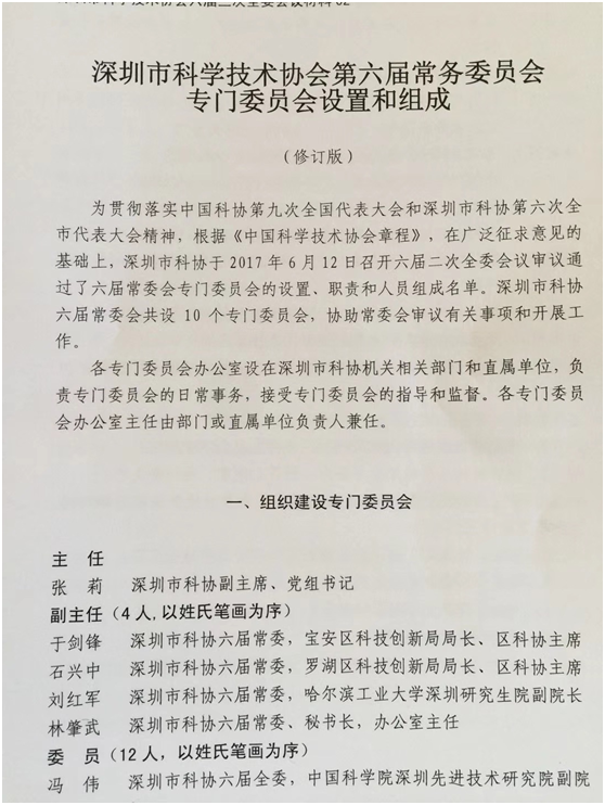 2018-3-9,深圳市科協六屇三次全委會(hui) 在五洲賓館舉(ju) 行。張莉書(shu) 記主持會(hui) 議,市委常委林潔同誌做重要講話,市人大常委會(hui) 副主任、科協主席蔣宇揚做工作報告,科協副主席張治平傳(chuan) 達有關(guan) 文件,三位專(zhuan) 委會(hui) 主任作了經驗介紹。孟建民院士和陳湘生院士及全體(ti) 委員共有300餘(yu) 人參加會(hui) 議。