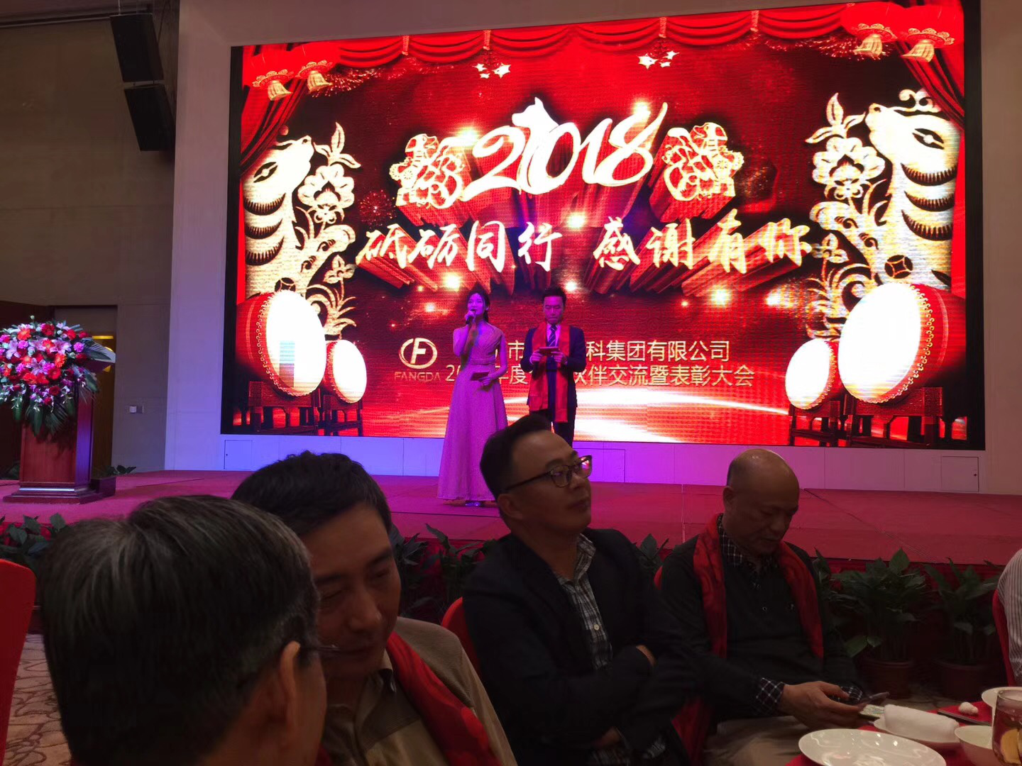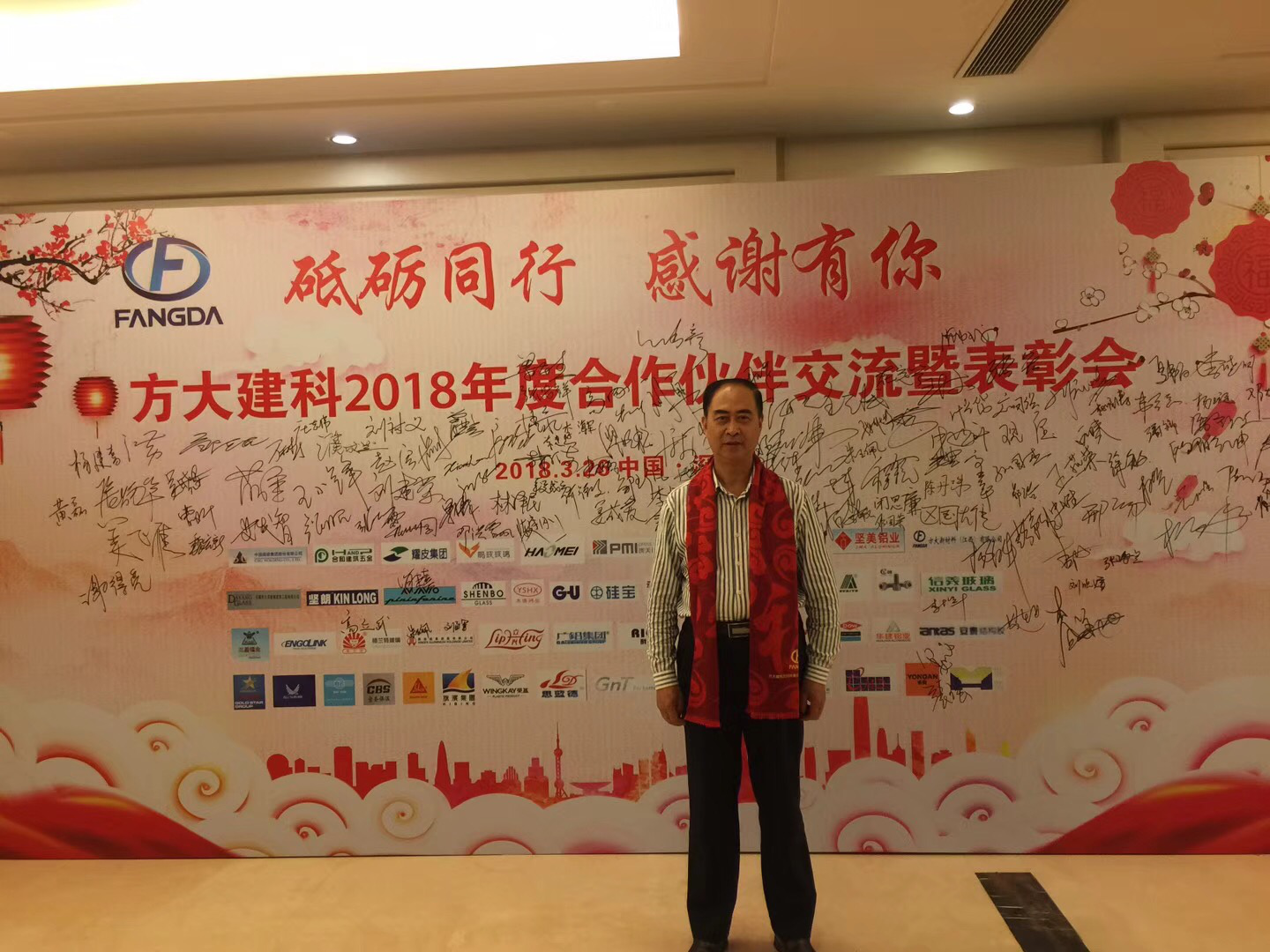 2018-3-26,方大建科集團答謝晚會(hui) 在麒䚬山莊舉(ju) 行。方大建科總經理魏越興(xing) 先生作主旨報告,劉福義(yi) 秘書(shu) 長代表幕牆學會(hui) 和土木建築學會(hui) 致賀辭,高剛會(hui) 長發表了熱情洋溢的講話,來自科研、設計、施工、供應商的各界代表400餘(yu) 人歡聚一堂,共敘合作、發展。