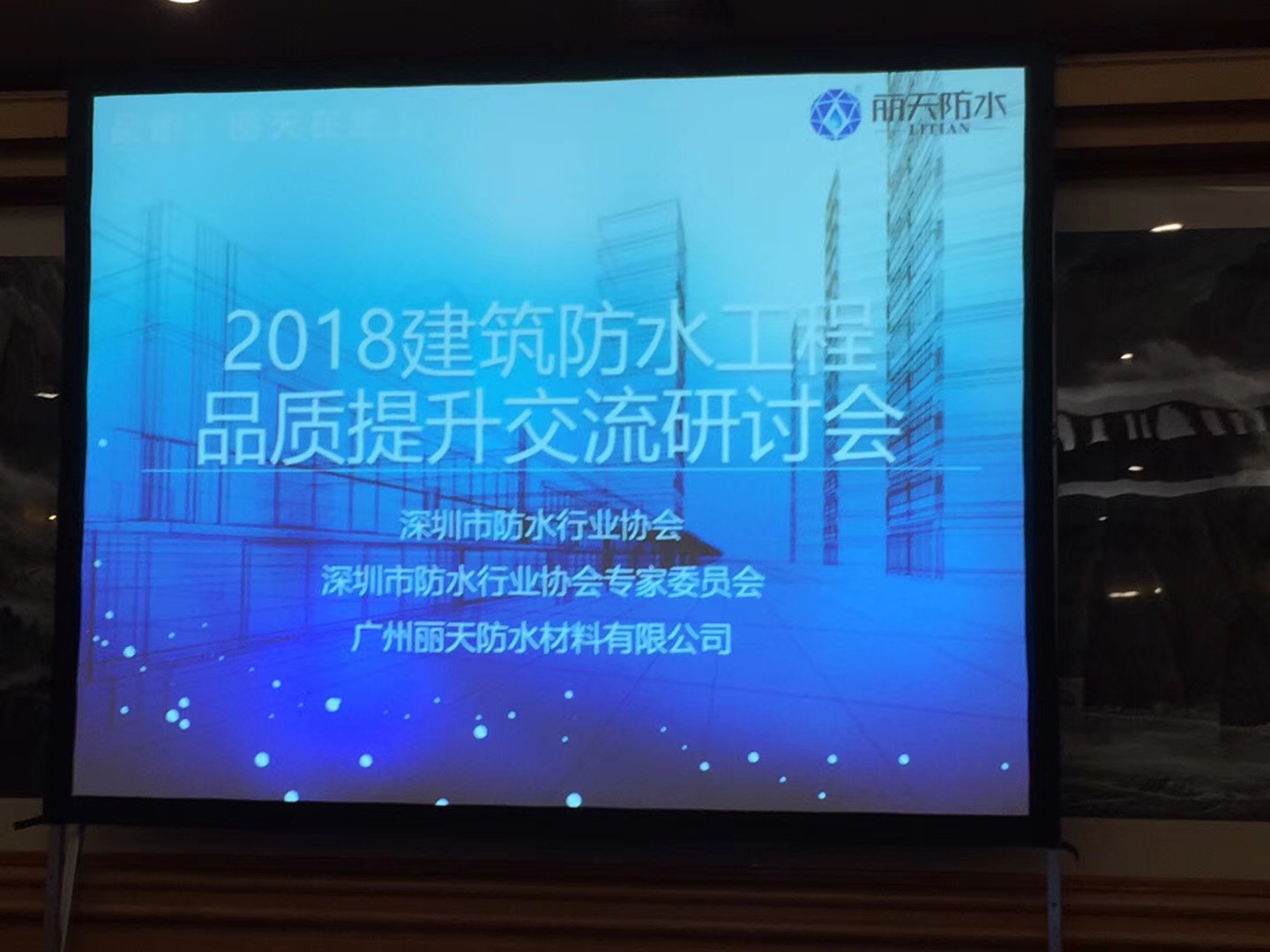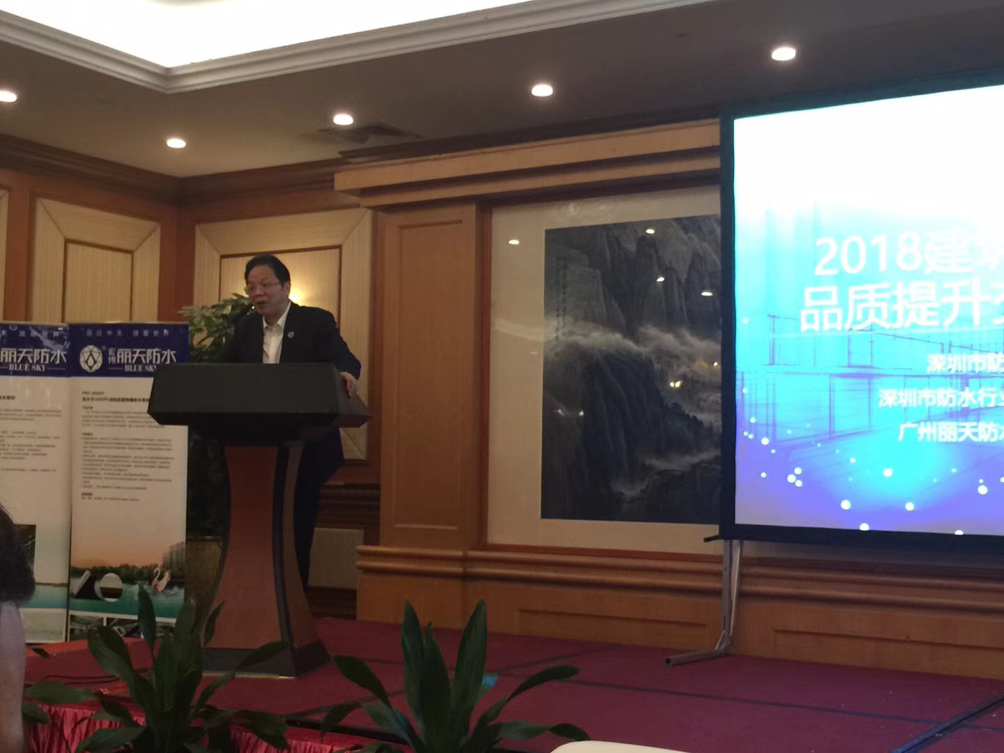 2018-4-13,深圳市防水行業(ye) 協會(hui) 和專(zhuan) 家委員會(hui) 在五洲賓館聯合主辦,廣州麗(li) 天防水公司承辦“品質-麗(li) 天在路上”防水體(ti) 係研討會(hui) ,瞿培華教授主持研討會(hui) ,陳傑董事長致辭,劉福義(yi) 秘書(shu) 長代表bv伟德体育官方网站蒞臨(lin) 會(hui) 議並致辭。