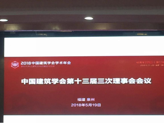 2018-5-18-20,中國建築學會(hui) 學術年會(hui) 和中國建築學十三屆三次理事會(hui) 在福建泉州舉(ju) 行。鍾繼壽秘書(shu) 長主持會(hui) 議,福建省建設廳和泉州巿領導致賀辭。出席會(hui) 議的有何鏡堂院士、歐進萍院士、崔凱院士、聶建國院士、劉家平院士、王建囯院士等來自全國的建設科技工作者800餘(yu) 人。