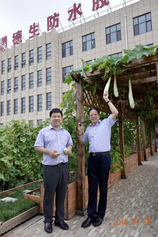2018-7-26,唐山,借2018年種植屋麵技術分會(hui) 年會(hui) 暨第九屆種植屋麵技術與(yu) 市場研討會(hui) 召開之際,李德生董事長邀請朱冬青、苗燕、劉福義(yi) 、瞿培華、楊際梅等嘉賓專(zhuan) 程來到德生總部參觀調研“德生空中院”。德生空中院以萬(wan) 年牢防水係統為(wei) 基礎,經過兩(liang) 年的升級,集海綿城市、都市農(nong) 業(ye) 、生態環保各種特色於(yu) 一體(ti) ,致力於(yu) 實現都市人美好生活之夢想。