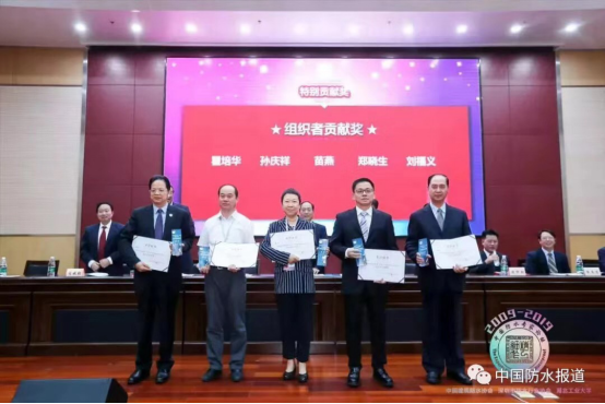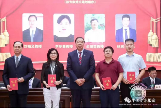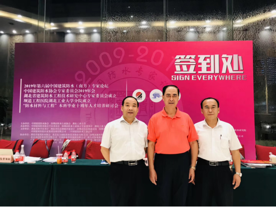 2019-6-29,第六屆中國建築防水(南方)專(zhuan) 家論壇暨五合一會(hui) 議在湖北工業(ye) 大學舉(ju) 行。會(hui) 議由瞿培華教授主持,朱冬青秘書(shu) 長、劉德富校長、王複明院士、陳湘生院士、鄭曉生副局長等在主席台就座,來自全國的設計、科研、高校、企業(ye) 的代表共計450餘(yu) 人出席會(hui) 議。