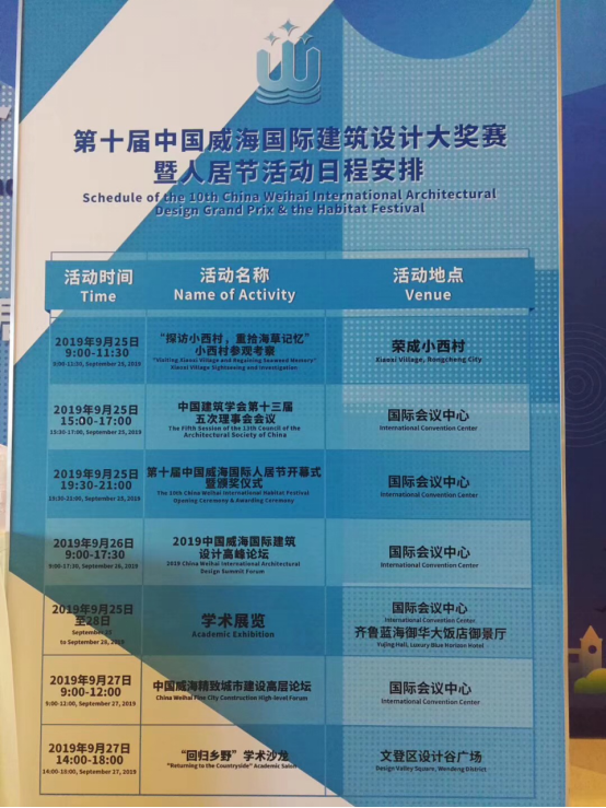 2019-9-25/28,第十屆中國威海建築設計大獎賽暨人居節在威海市舉(ju) 行。國際建協主席、亞(ya) 建協主席、中國建築學會(hui) 修龍理事長、山東(dong) 省的各級領導及來自全國的專(zhuan) 家、學者800餘(yu) 人出席會(hui) 議。