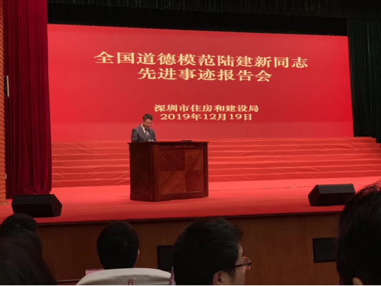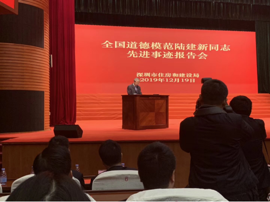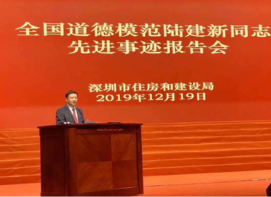 2019-12-19,深圳市住建局組織召開“全國道德模範陸建新同誌先進事跡報告會(hui) ”。會(hui) 議由高泉付局長主持,報告團介紹陸建新同誌先進事跡,張學凡局長作重要講話。