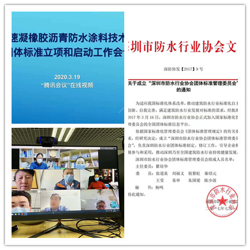 3月19日,深圳市防水行業(ye) 協會(hui) 組織召開《噴塗速凝橡膠瀝青防水塗料技術規程》團體(ti) 標準立項和啟動工作會(hui) 議,劉福義(yi) 秘書(shu) 長出席視頻會(hui) 議。