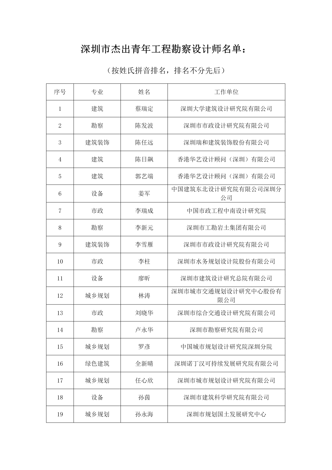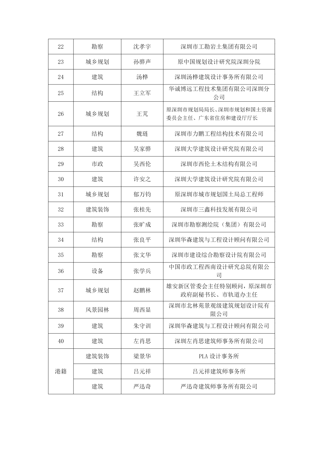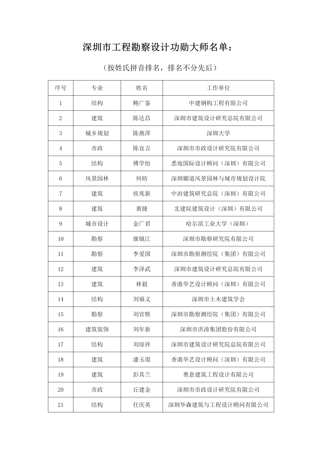 關於第一屆深圳市工程勘察設計大師、功勳大師和深圳市傑出青年工程勘察設計師評選結果公示的通知