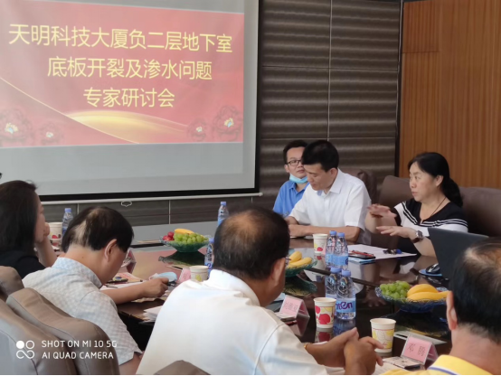 會(hui) 議議題:天明科技大廈負二層地下室底板開裂及滲水問題解決(jue) 方案專(zhuan) 家研討會(hui)