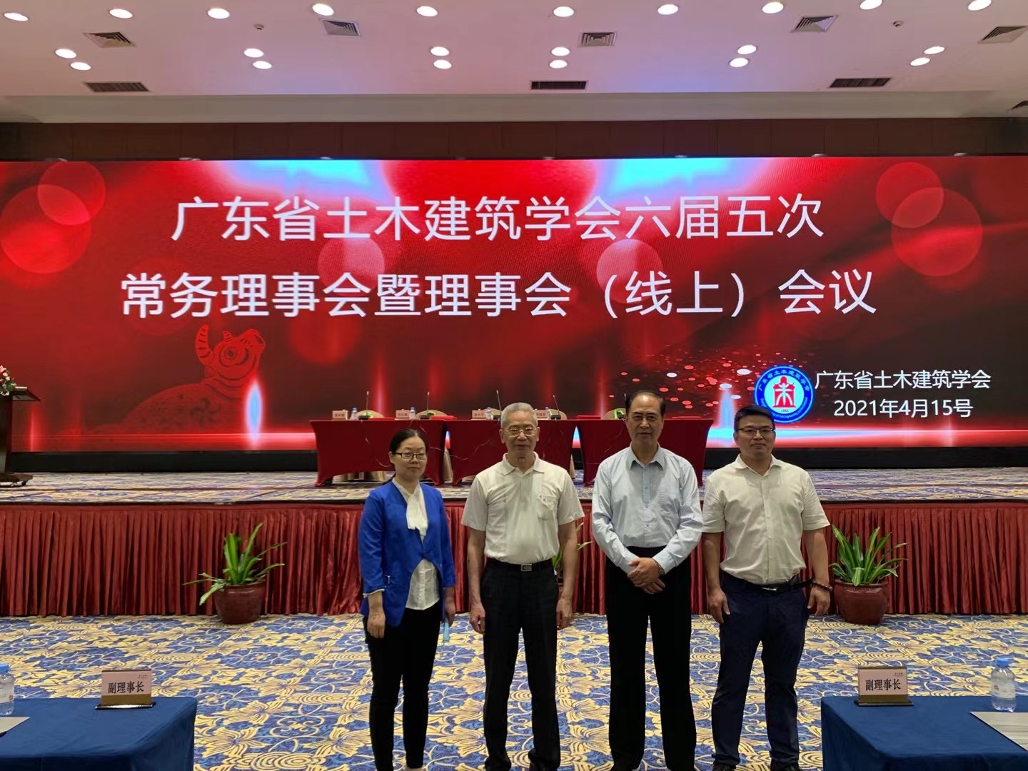 2021-4-15,廣東(dong) 省土木建築學會(hui) 六屆五次常務理事會(hui) 在廣州東(dong) 方賓館舉(ju) 行。會(hui) 議由趙資欽常務副理事長主持,徐天平理事長做2020年工作總結和2021年工作安排。審議並通過了學會(hui) 各項議程,並進行了頒獎活動。在主席台就座的有中國科學院吳碩賢院士、廣東(dong) 省建設廳原廳長勞應勳先生、廣東(dong) 省土木建築學會(hui) 徐天平理事長、廣東(dong) 省土木建築學會(hui) 趙資欽常務副理事長、廣東(dong) 省土木建築學會(hui) 梁偉(wei) 雄付理事長兼秘書(shu) 長,來自全省的近百名常務理事和理事出席會(hui) 議。