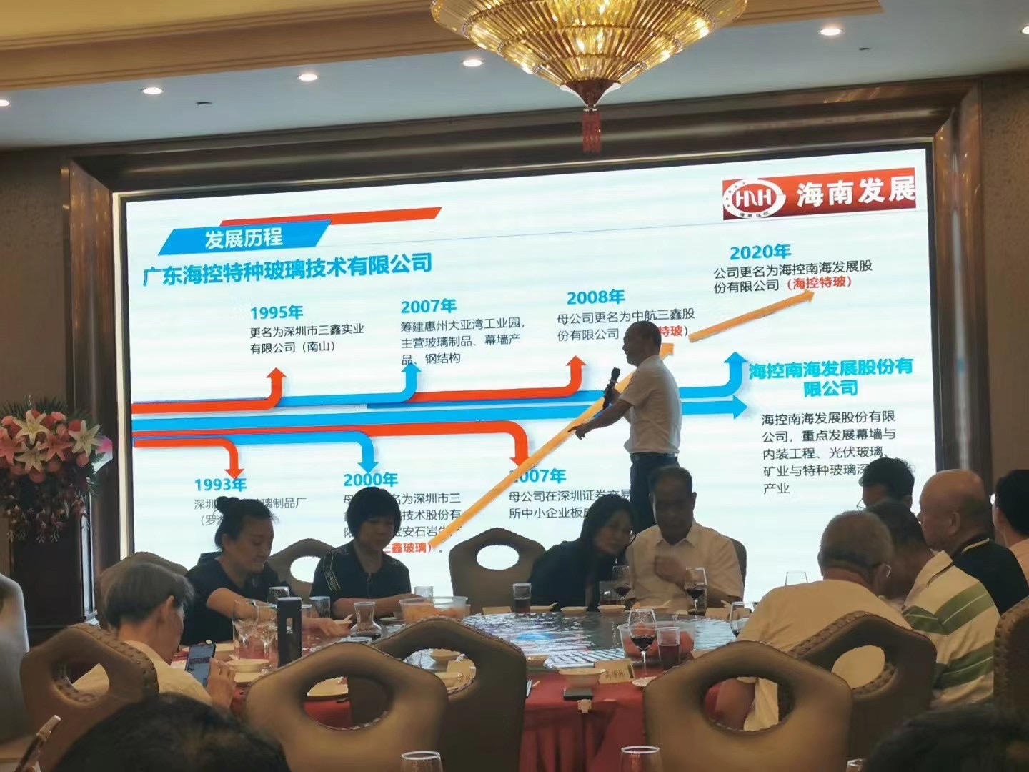 2021-5-8晚上,廣東(dong) 海控特種玻璃學術交流會(hui) 暨深圳幕牆行業(ye) 專(zhuan) 家聯誼會(hui) 在大中華喜來登酒店舉(ju) 行。朱強華董事長、劉福義(yi) 秘書(shu) 長、薑成愛主任分別致辭。劉東(dong) 陽總工程師做學術報告。來自全市的幕牆行業(ye) 的專(zhuan) 家歡聚一堂,共敘友情。