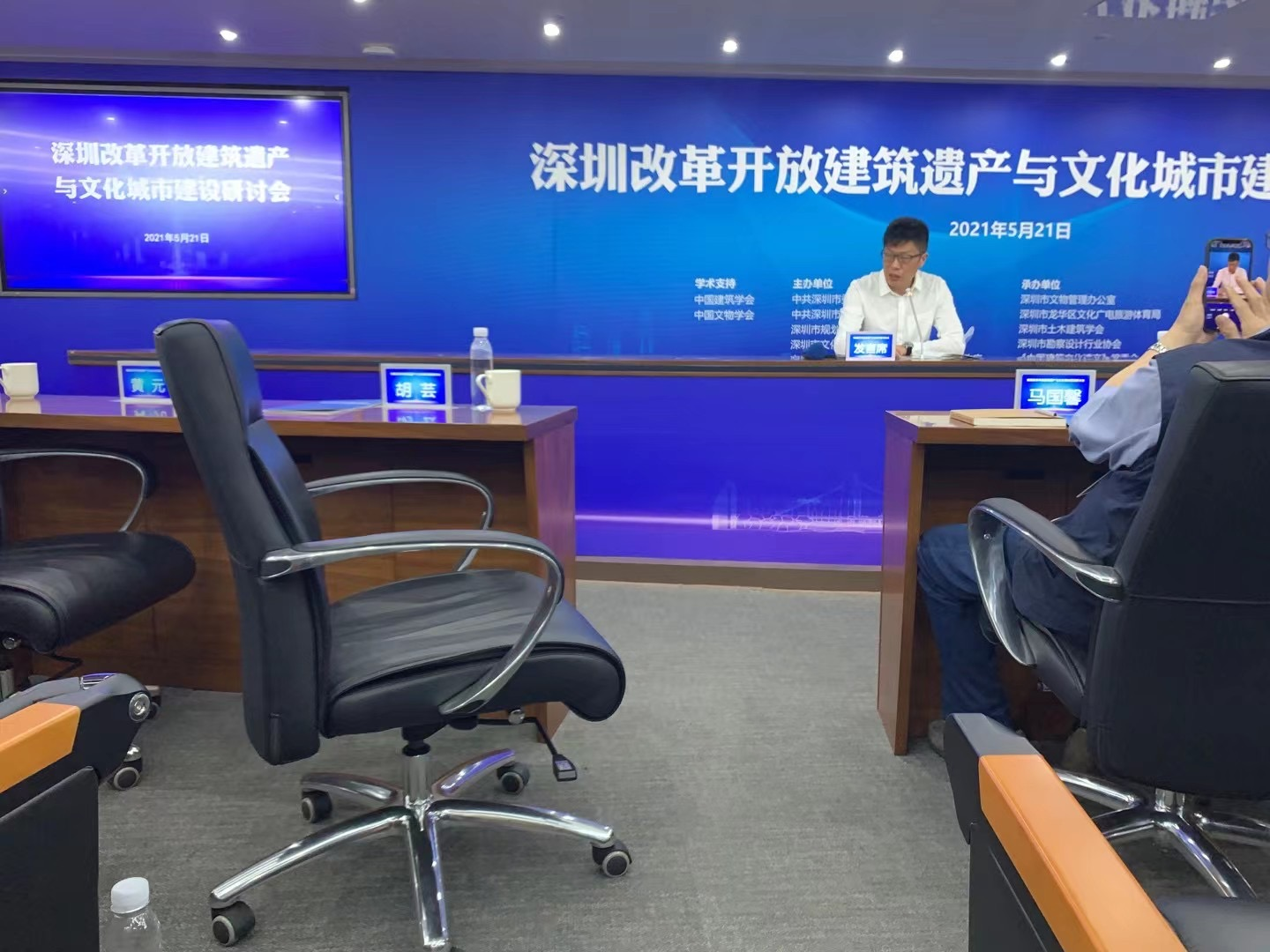 2021-5-21,深圳改革開放建築遺產(chan) 與(yu) 文化城市建設研討會(hui) 在國貿大廈舉(ju) 行。中國建築學會(hui) 修龍理事長、中國文物學會(hui) 單霽翔會(hui) 長、龍華區委王衛書(shu) 記、中國工程院馬國馨院士、何鏡堂院士、各位大師及有關(guan) 方麵負責人約200餘(yu) 人出席會(hui) 議。會(hui) 議由龍華區文體(ti) 局、bv伟德体育官方网站、深圳市勘察設計行業(ye) 協會(hui) 聯合承辦。