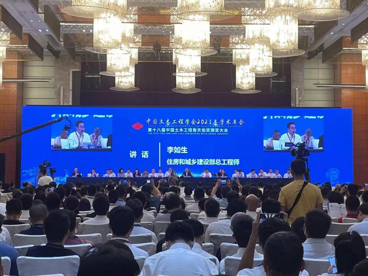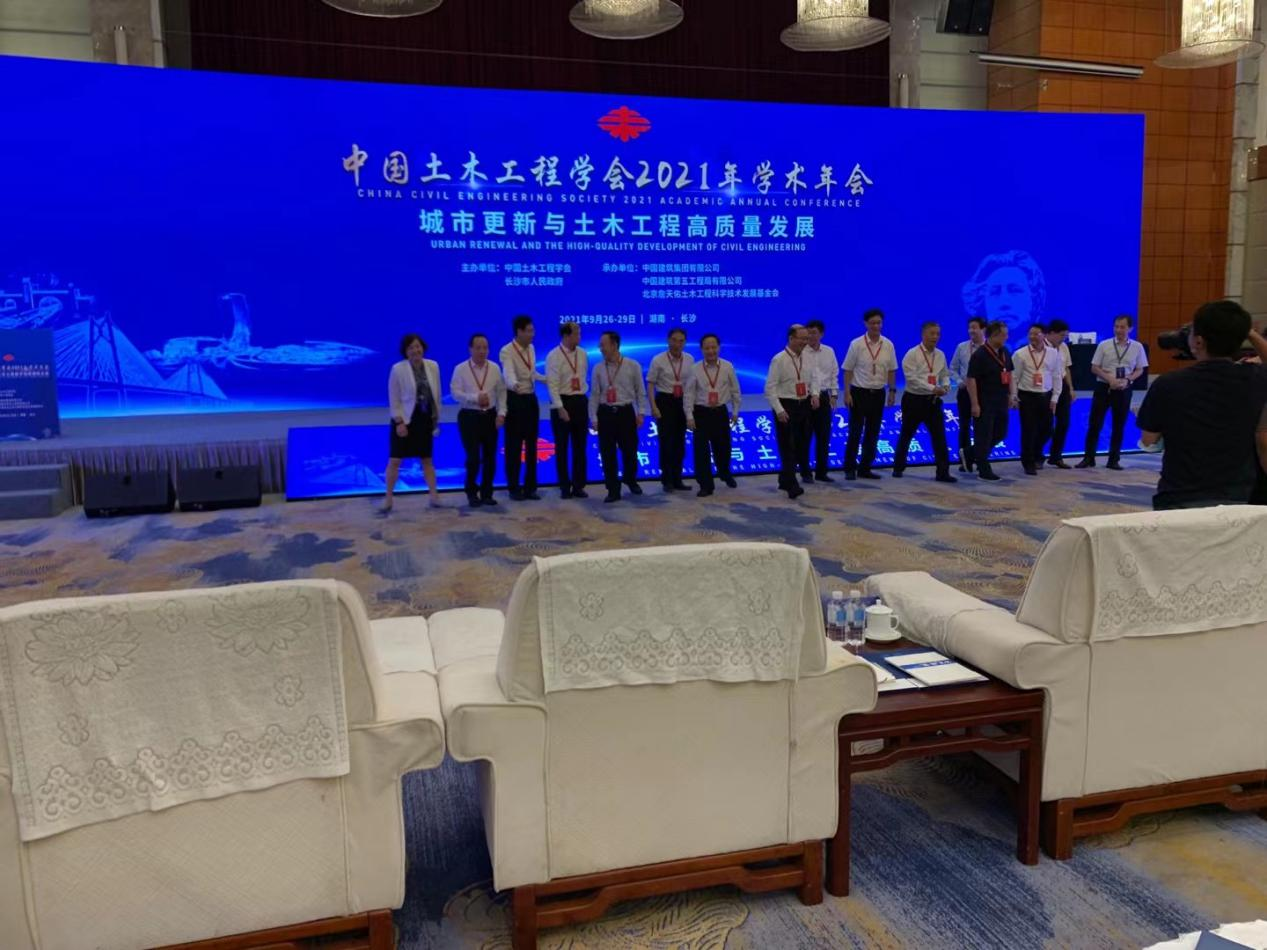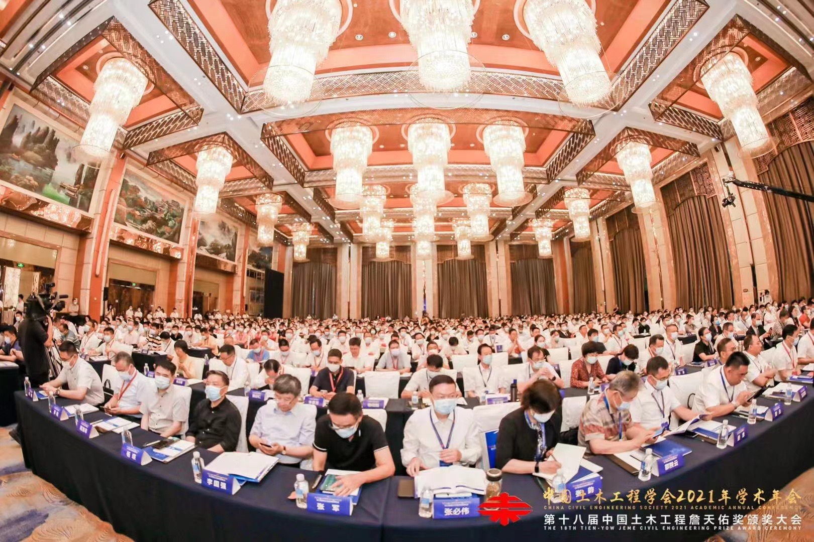 2021-9-27-29日,中國土木工程學會(hui) 學術年會(hui) 與(yu) 第十八屆中國土木工程詹天佑獎頒獎大會(hui) 在湖南長沙市世紀金源大飯店舉(ju) 行。會(hui) 議由中國土木工程學會(hui) 和長沙市政府共同主辦,中建總公司承辦。開幕式由中國土木工程學會(hui) 付理事長尚春明主持。長沙市付市長周誌凱、湖南省付省長陳文浩、住建部總工程師李如生、學會(hui) 理事長易軍(jun) (住建部原付部長)分別講話。學術報告分別由聶建國院士、盧春房院士、王同軍(jun) 付理事長主持。來自全國科研、高校、建設、施工、政府有關(guan) 專(zhuan) 家、教授、嘉賓共計1200餘(yu) 人現場出席會(hui) 議。規模宏大,盛況空前。