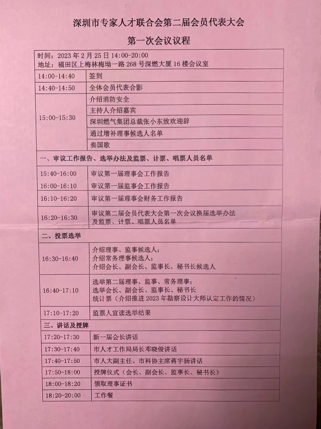 2023-2-25。深圳市專(zhuan) 家人才聯合會(hui) 二屆一次會(hui) 員代表大會(hui) 在燃氣大廈舉(ju) 行。350名代表通過無記名投票方式選舉(ju) 孟建民院士連任會(hui) 長,選舉(ju) 郭清藍為(wei) 連任秘書(shu) 長。市人大副主任、市科協主席蔣宇揚發表熱情洋溢的講話。