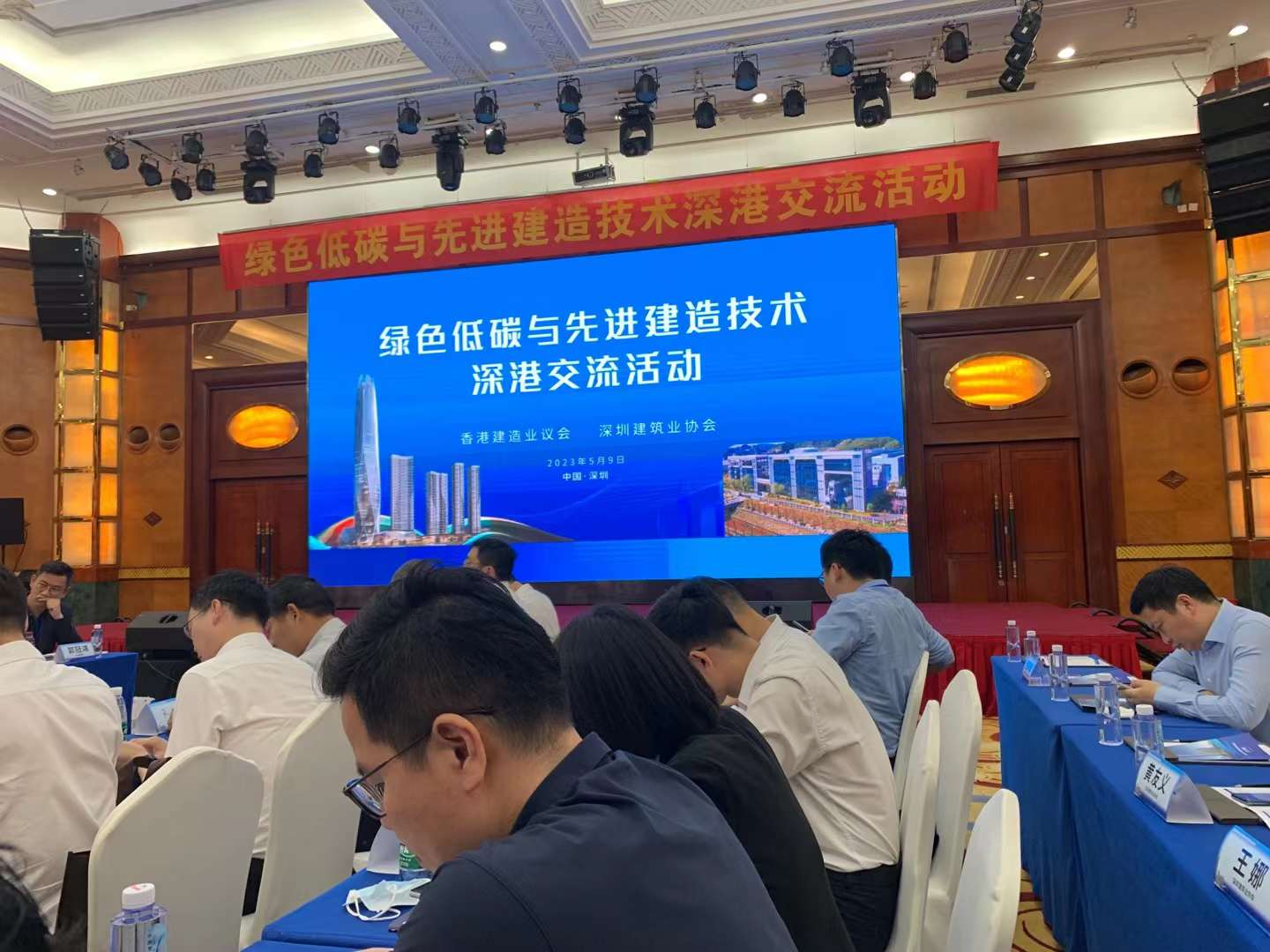 2023-5-9。綠色低碳與(yu) 先進建造技術深港交流活動在聖廷苑酒店舉(ju) 行。會(hui) 議由尹劍輝會(hui) 長主持,市住房建設局郭曉寧副局長和董亮付處長出席,出席會(hui) 議的還有中建三局、福田區政府及香港各界專(zhuan) 家共計120多人。參觀了華富村舊改項目,並進行了交流。