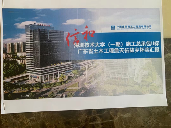 2023-5-25。廣東(dong) 省詹天佑故鄉(xiang) 杯獎專(zhuan) 家組一行前往深圳技術大學校區考察。聽取了中建五局的匯報並進行了谘詢後,一致認為(wei) 深圳技術大學是一所全新的現代化大學。大學建築麵積90多萬(wan) 平方米,共設置9個(ge) 學院和文體(ti) 和生活設施,配套齊全,環境優(you) 美。