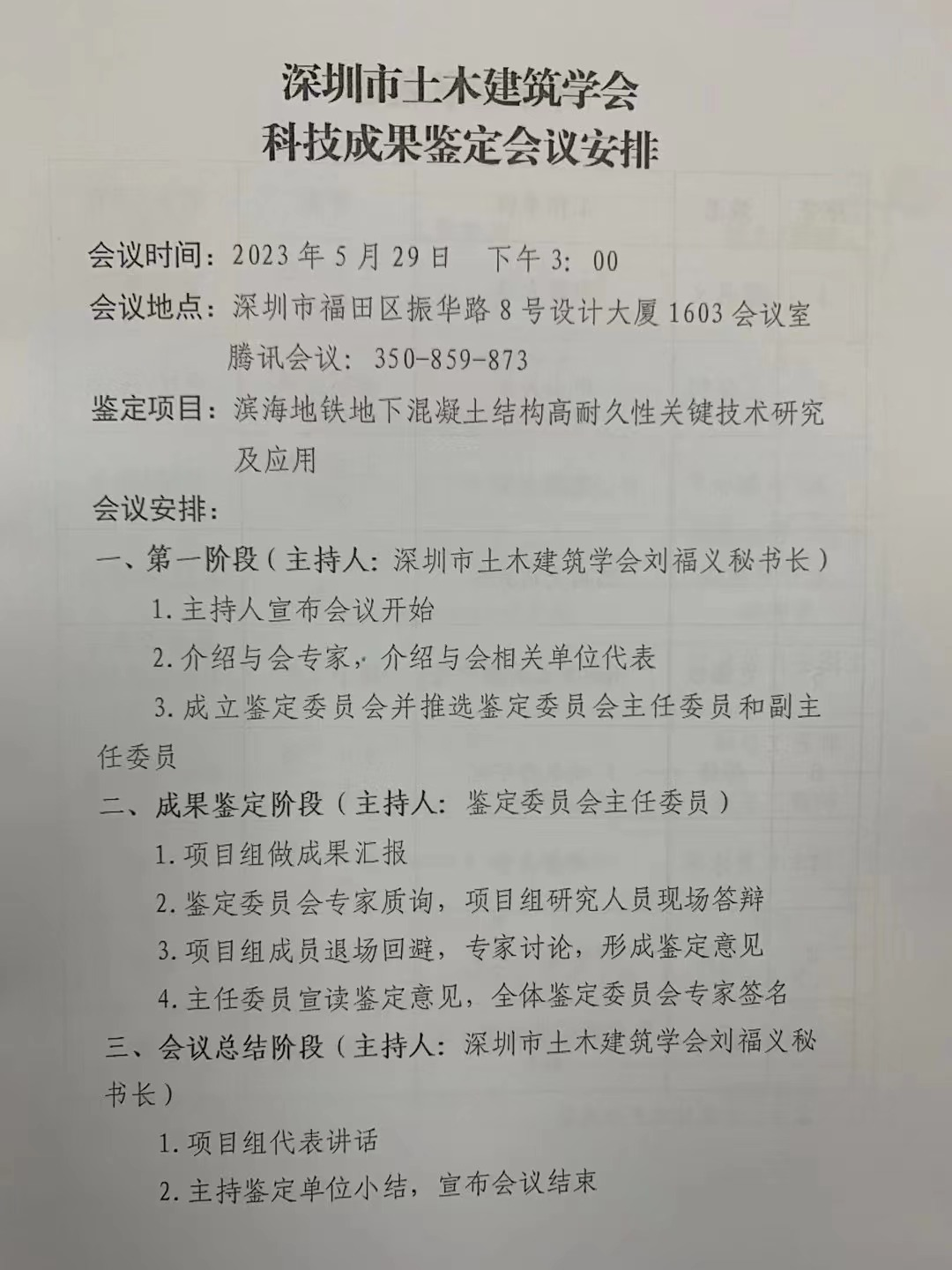 2023-5-29。濱海地鐵地下混疑土結構高耐久性關(guan) 鍵技術研究及應用成果鑒定會(hui) 由bv伟德体育官方网站主持,在設計大廈會(hui) 議室舉(ju) 行,獲得參評專(zhuan) 家的一致好評。