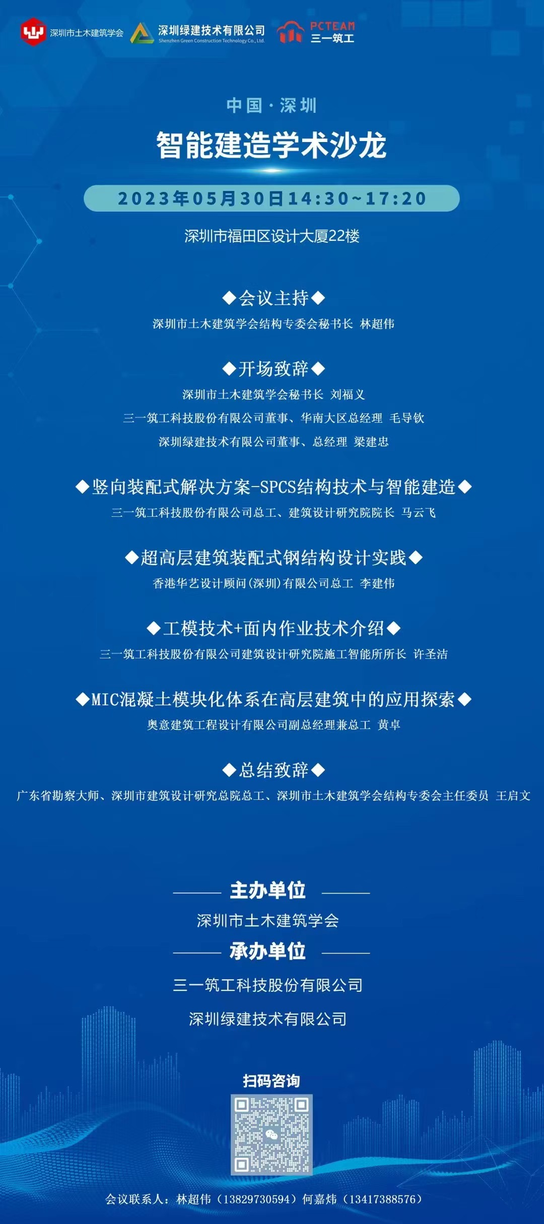 2023-5-30。智能建造學術沙龍在設計大廈舉(ju) 行。由結構專(zhuan) 業(ye) 委員會(hui) 秘書(shu) 長林超偉(wei) 主持,劉福義(yi) 秘書(shu) 長代表學會(hui) 致辭,3位專(zhuan) 家介紹智能建造心得,王啟文主任進行了沙龍交流會(hui) 的總結。