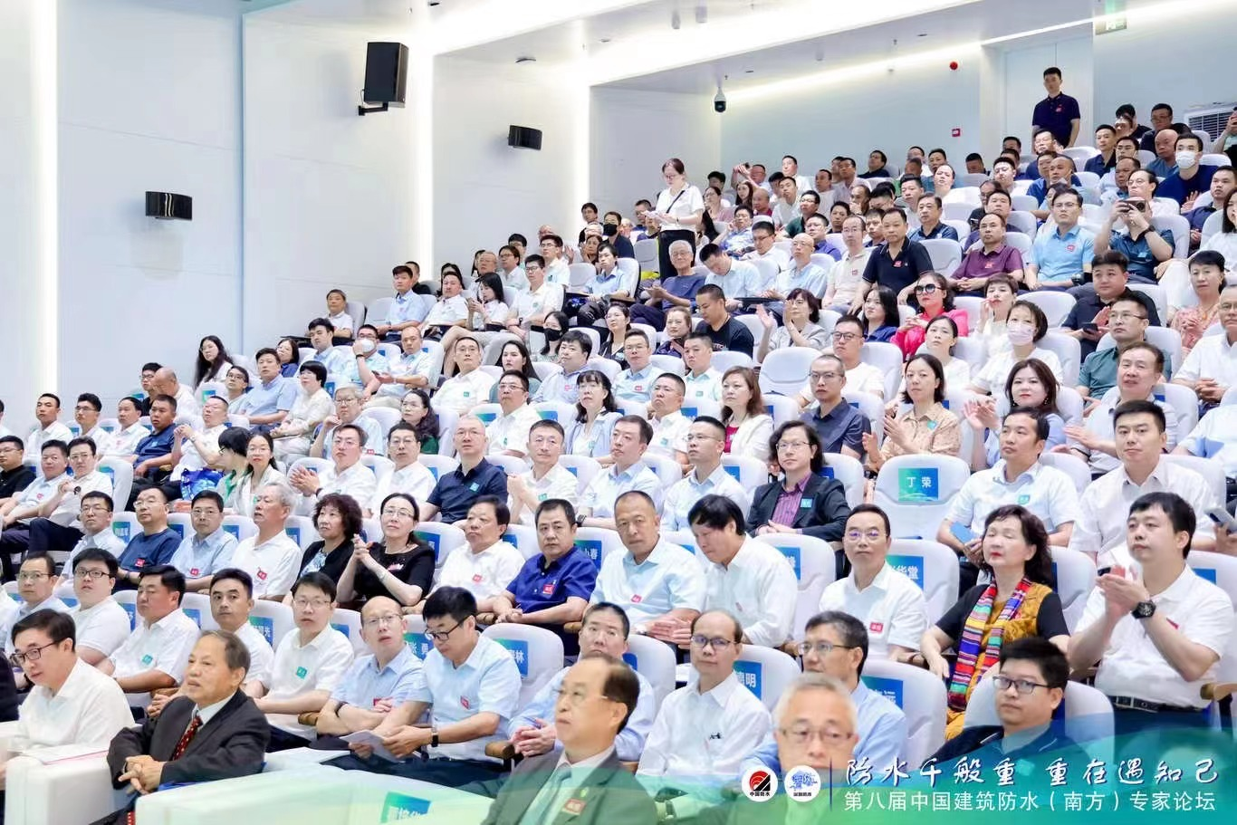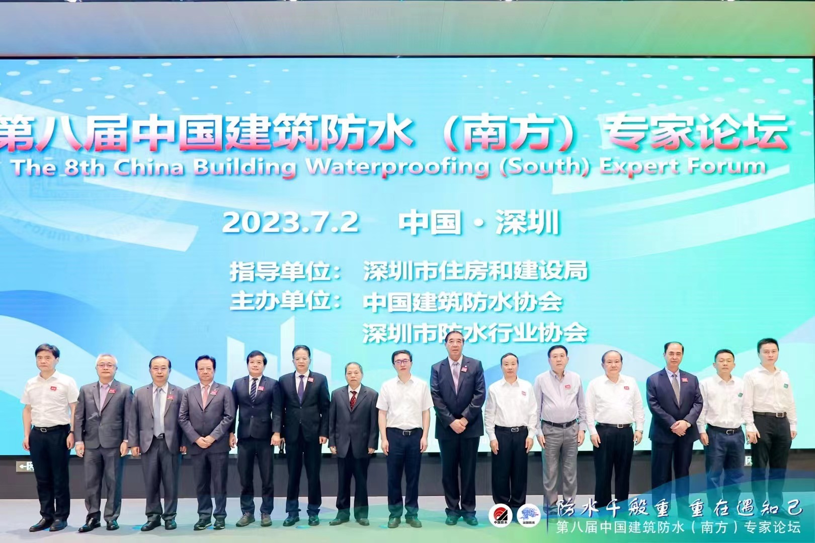 2023-7-2。第八屆中國建築防水(南方)專(zhuan) 家論壇在深圳市建設局會(hui) 議中心舉(ju) 行。會(hui) 議由瞿培華教授主持。朱冬青秘書(shu) 長、胡建文書(shu) 記、郭曉寧付局長分別致辭。會(hui) 議表彰了30家先進集體(ti) 。南嶺會(hui) 長、朱誌遠總工、劉智聰會(hui) 長、張勇總工分別做大會(hui) 主旨報告。下午的分論壇由羨永彪付會(hui) 長主持。劉國華總工、韓麗(li) 莉所長、沈春林執行院長、張道真教授、王瑩總工、楊飛總經理分別做學術演講。來自全國防水行業(ye) 的專(zhuan) 家、學者、工程技術人員、企業(ye) 家及港澳台的專(zhuan) 家共計360多人歡聚防水的盛會(hui) 。