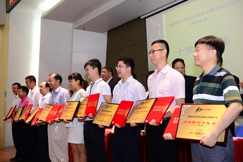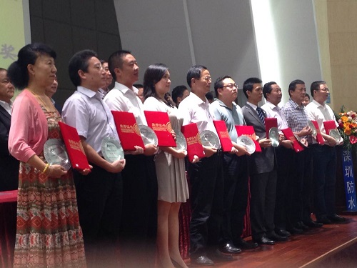 秦紹元秘書(shu) 長宣讀表彰決(jue) 定。大會(hui) 分別向深圳卓寶、深圳科順、深圳新黑豹、深圳藍盾、東(dong) 方雨虹、深圳先泰、深圳朗邁、深圳耐克、廣州台實、深圳弘深10家企業(ye) 頒發了“深圳防水十佳企業(ye) 獎”;向童祖元、鄒先華、王榮柱、方勇、楊浩成、傅淑娟、劉單博、王萬(wan) 和、任紹誌、杜昕10位企業(ye) 家頒發了“深圳防水十佳企業(ye) 家獎”;向陳少波、王瑩、朱國梁、易舉(ju) 、趙岩、戴爾仁、李澤武、吳碧橋、杜劍、石偉(wei) 國10位專(zhuan) 家頒發“深圳防水優(you) 秀專(zhuan) 家獎”;向鄭曉生、瞿培華、張道真、何克文、區國雄、秦紹元6位專(zhuan) 家頒發“深圳防水傑出貢獻獎”。這些獎項既是對這些優(you) 秀企業(ye) 、企業(ye) 家和專(zhuan) 家的肯定,又記載了深圳防水十年來的成長。