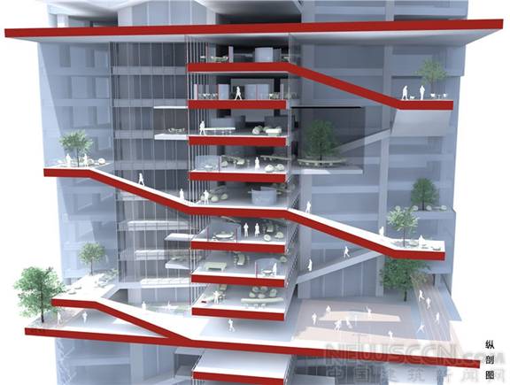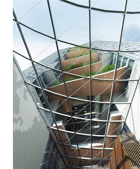 設計依據百度“簡單可依賴”的核心價(jia) 值觀,方案從(cong) 百度自身對辦公的差異化需求出發,將傳(chuan) 統中核大進深辦公平麵做“切薄”處理,形成每個(ge) 標準辦公空間進深為(wei) 12m的方整平麵,並可以靈活適應各種辦公布置的需求。最重要的是這樣的設計處理創造出了一個(ge) 與(yu) 眾(zhong) 不同的“活力核心”空間,實現了百度總部辦公空間對於(yu) “聯係”的需求。這個(ge) “活力核心”空間由樓梯穿插錯層連接,包含了各種類型的會(hui) 議空間,從(cong) 兩(liang) 人間的討論到十幾人的圓桌會(hui) 議,活力核心使開會(hui) 變得更加輕鬆有趣。內(nei) 部還在不同空間設置了許多非正式交流場所,這種多類型、情景化的會(hui) 議與(yu) 討論空間的存在,能隨時激發員工的創意火花。百度國際大廈秉承低碳環保的理念,兼顧通風、采光以及景觀效果,使其成為(wei) 一座與(yu) 眾(zhong) 不同的國際辦公場所。