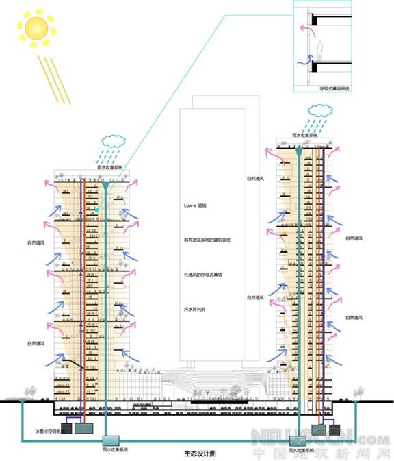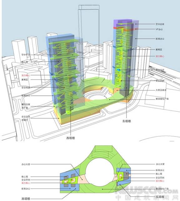 作為(wei) 百度華南地區的總部和研發中心,百度國際大廈是一座集運營和研發為(wei) 一體(ti) 的綜合性研發辦公樓。在遵循片區規劃視覺界麵的前提下,塔樓呈南北向布置,東(dong) 西向敞開,以最大化利用景觀資源,並形成對街區良好的形象展示。同時,西塔樓與(yu) 之呼應,對中心綠地形成圍合的態勢,這樣的設計手法增強了該片區節點的整體(ti) 性和標誌性。