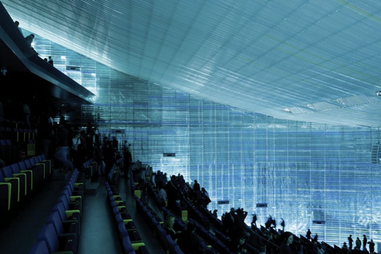 這個(ge) 以多色彩的塑料帶包裹的臨(lin) 時建築,將利用ETFE建築塑料薄膜。塞爾加斯卡諾建築事務所已將這種材料用於(yu) 多個(ge) 建築項目——包括它在西班牙喀他赫納市(Cartagena)設計的會(hui) 議大廳(El B Auditorium and Congress Hall)。
