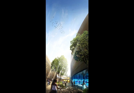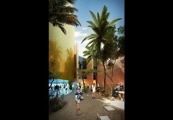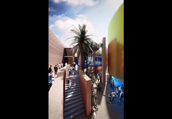 阿拉伯聯合酋長國的“峽穀”狀展覽館接近米蘭(lan) 世界博覽會(hui) 場地的中心,借鑒了阿拉伯聯合酋長國古代沙漠城市的形態,其特點是有很窄的、自我遮陽的步行街和庭院,以提高“自然的能源效率”。