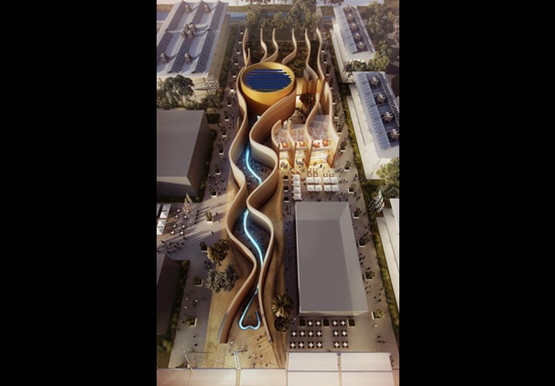 + Partners)為(wei) 阿拉伯聯合酋長國設計的“峽穀”狀展覽館,最近在米蘭(lan) 世界博覽會(hui) 上亮相。