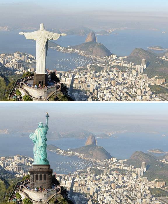 來自世界各地的數字藝術家發來了他們(men) 的作品,讓我們(men) 看到了如果某個(ge) 城市的地標換成了別的地方的地標,這個(ge) 城市將會(hui) 是什麽(me) 樣子的。比如裏約熱內(nei) 盧的基督救世主雕像被換成了自由女神像,悉尼歌劇院被羅馬鬥獸(shou) 場所取代,臭名昭著的好萊塢標誌出現在了中國長城上。
