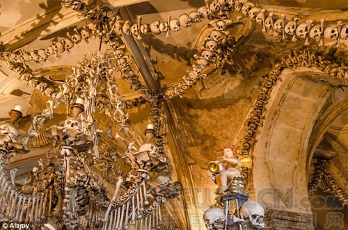 捷克布拉格的骨頭教堂是喜歡驚險刺激的你不容錯過的奇觀之一。該教堂建於(yu) 13世紀,坐落於(yu) 布拉格郊區,據相關(guan) 人士估計裏麵收納了4000到7000多人的屍骨,他們(men) 中的