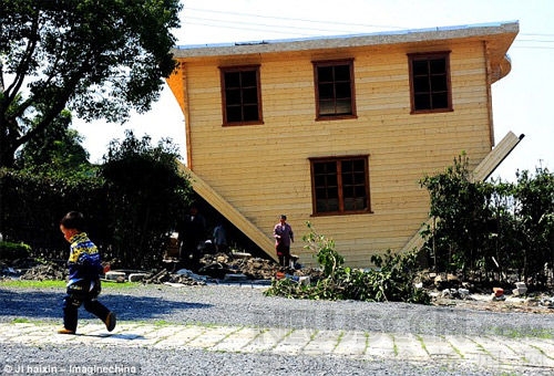 中國上海金山區楓涇古鎮中國農(nong) 民畫村的“倒置屋”,因房屋的結構奇特,屋頂朝下屋基朝上,內(nei) 部所有家具也都是從(cong) 頂部懸掛下來,自2014年開放以後,吸引了很多遊