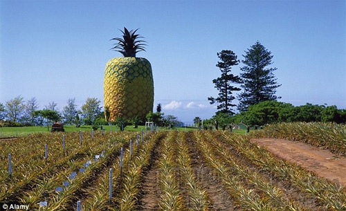 片土地上蓬勃生長的曆史事件。遊客可以在菠蘿雕像裏麵觀影,和購買(mai) 當地特色農(nong) 產(chan) 品。