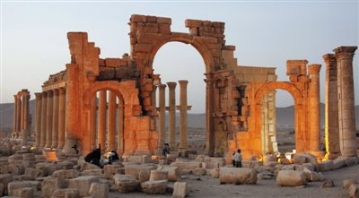 10月4日,敘利亞(ya) 古城巴爾米拉標誌性建築凱旋門被“伊斯蘭(lan) 國”炸毀。圖為(wei) 被炸毀前的凱旋門。
