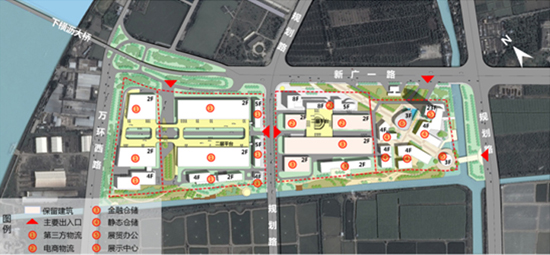 基地主要分為(wei) 四個(ge) 地塊,其中地塊三保留原有的廠房建築一座。土地利用上創造物流倉(cang) 儲(chu) 及其配套辦公等功能分區合理又有機結合,便於(yu) 分期實施的土地利用布局。