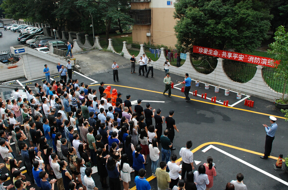 為(wei) 切實加強全體(ti) 員工的消防安全意識,提高安全消防素質與(yu) 自救能力,保障企業(ye) 和員工的人身、財產(chan) 安全,2015年11月9日,在公司領導的大力支持下,橋業(ye) 物業(ye) 公司牽頭舉(ju) 辦了以“珍愛生命、共享平安”為(wei) 主題的消防應急演練活動。本次演練還邀請了武警消防支隊、交警支隊、醫院急救科專(zhuan) 業(ye) 人員提供指導和保障,路路通節目主持人熊警官、轄區消防民警袁警官蒞臨(lin) 指導。我司共 288 人參加。