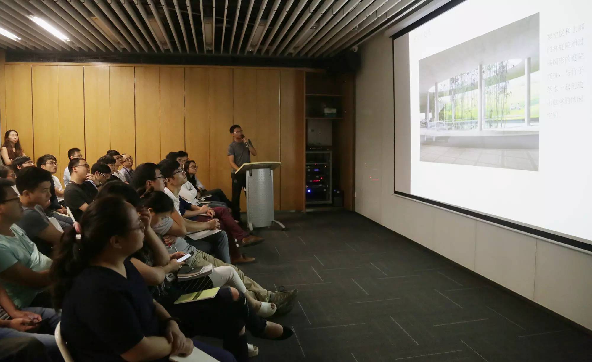 喻津津主講“豪宅配置”;梁豔從(cong) “禪意”入手介紹了禪意園林的營造手法;陳海冰分析了紅樹西岸的棕櫚島的設計;李春飛以德國easyCredit-Haus創客空間為(wei) 例,解析成功的創客空間所需要素;楊慶波則介紹了新加坡的垂直綠化。