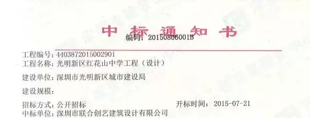 聯合創藝中標光明新區紅花山中學工程(設計)項目